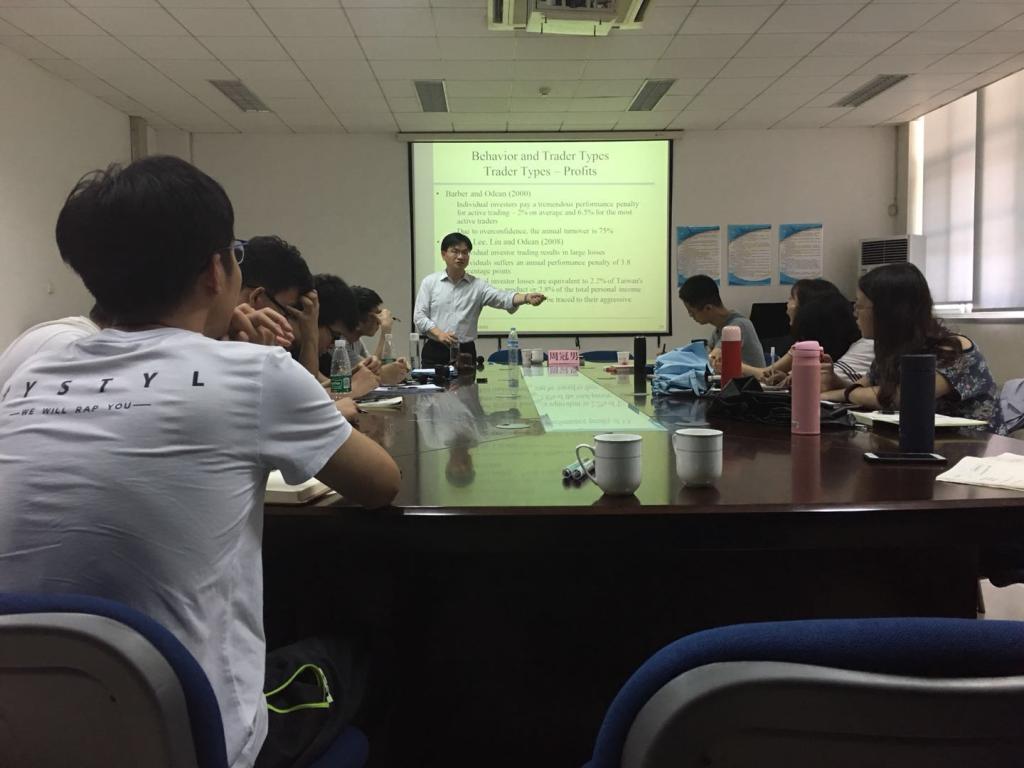 6月14日-16日,台湾政治大学商学院副院长暨财务管理系特聘教周冠男博士为swag做爱 2017级研究生进行为期三天的《数量经济分析》课程授课,这是学院为进一步发挥swag做爱 现有国际资源——‘海外名师’项目的潜力和影响,通过课程建设培养中青年教学骨干,增强课程的国际化和前沿化,研究生的国际化视野,增进国际化合作前景,提升年轻教师的科研合作开展的项目。授课方式主要采用讲授内容与方法、课下小组讨论做项目、课上小组讲解等形式进行,以英文材料、英文讲解、并配以中文解释的有效的双语授课方式进行。swag做爱 教师朱庆锋、王怡、宗高峰等教师及金融学院部分年轻教师、2017级研究生及2016级及2015级金融数学专业部分本科生参加学术报告。