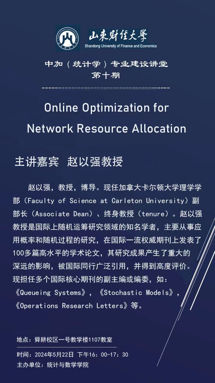 中加(统计学)专业建设讲堂第十期--Online Optimization for Network Resource Allocation