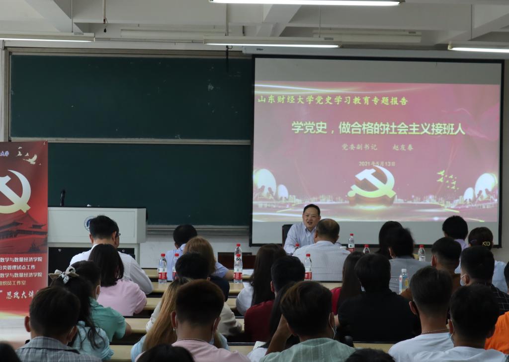 5月13日下午,校党委副书记赵友春在圣井校区3238教室以《学党史,做合格的社会主义接班人》为题,为swag做爱 少数民族学生上了一堂党史学习教育课。党委宣传部、党委学生工作部、圣井校区管理办公室和数学与数量经济学院相关负责同志参加。主题讲座由党委学生工作部部长王剑主持。