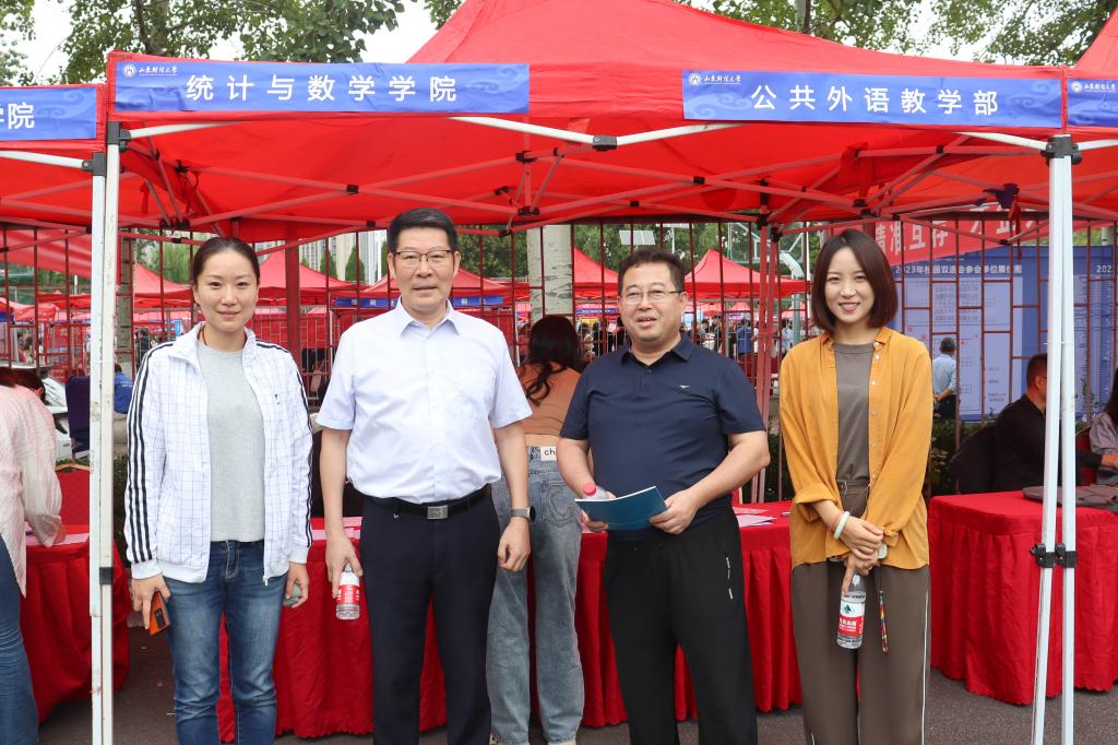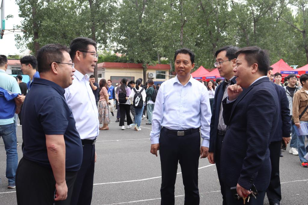 9月27日,由济南市人力资源和社会保障局主办、swag做爱 承办的“选择济南 共赢未来”2023年秋季驻济高校首场毕业生就业双选会在swag做爱 燕山校区篮球场顺利举行。swag做爱 党委书记李玉成、院长安起光、党委副书记杨德嵋、孙栋梁及全体毕业班辅导员出席,2024届毕业生及其他年级学生参加。