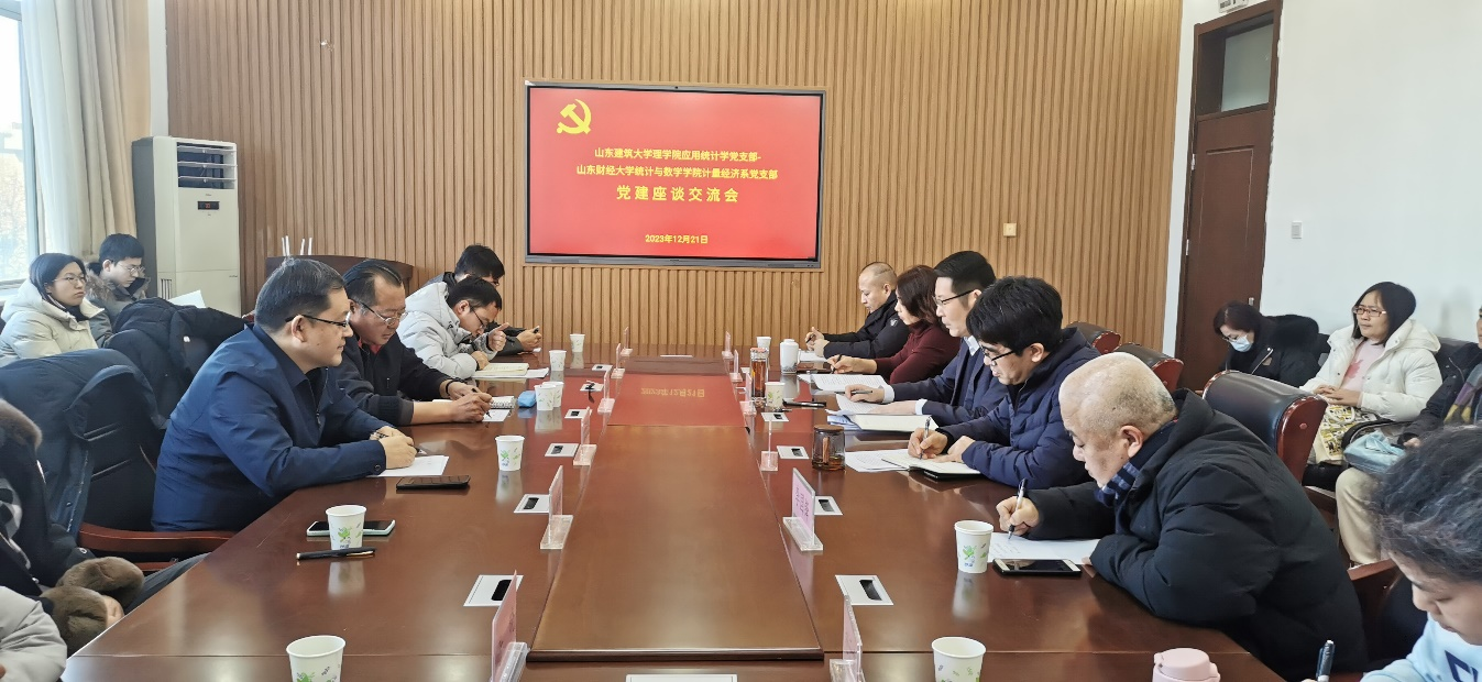 2023年12月21日下午,山东建筑大学理学院党委书记全锦带领应用统计学系党支部全体党员,在燕山校区1502会议室与swag做爱 计量经济系党支部进行了基层党建工作座谈交流。座谈会由计量经济系党支部书记李振波同志主持,swag做爱 党委书记李玉成参加了本次座谈会。