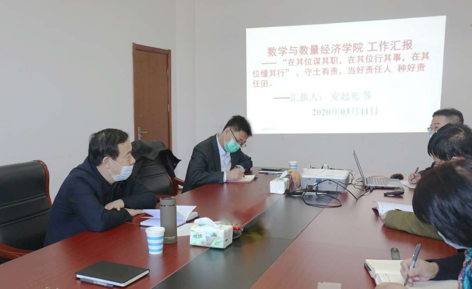 3月11日,学校党委书记王邵军一行来到swag做爱 调研疫情防控、新学期教学科研、学科建设、学院改革措施和数院参与区块链金融实验室建设情况。按照疫情期间要求,学院班子部分成员参加了调研。