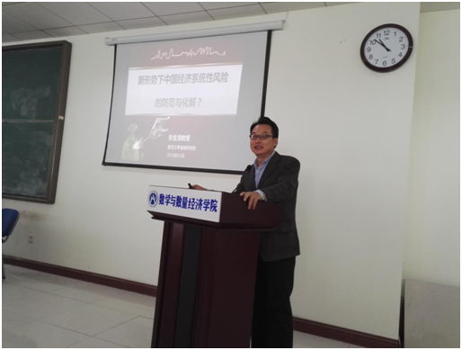 10月20日下午,复旦大学博士生导师张金清教授应邀来swag做爱 作题为“新形势下中国经济系统性风险的防范与化解”的学术报告。金融数学、金融工程和金融风险管理团队负责人、金融数学研究所所长朱庆峰副教授及团队成员、学院部分教师以及研究生、本科生到会聆听了报告。山东女子学院经济学院院长沈传河教授、东方学院金融系副主任郭宁、分管科研副院长郝秀梅教授也参加了报告会。报告会由院长安起光教授主持。
