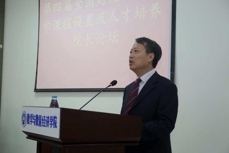 副校长韩作生教授在开幕式致辞中,首先代表学校对“第四届全国财经高校数学课程设置及人才培养”院长论坛在我校召开表示祝贺,对来自全国20余所高校的各位院长教授莅临我校表示热烈欢迎。接着从我校历史、现状、学科建设、师资队伍、科学研究、国际合作交流等方面向与会专家教授进行介绍,指出数学与数量经济学院是我校优秀学院之一,学科建设教学科研一直走在前列,在过去三年任期目标考核中刚刚获得优秀,最后希望数学与数量经济学院借助此次论坛的的顺利召开,在人才培养、学科建设、教学、科研等方面取得更大进步,并祝各位专家教授身体健康、工作顺利、万事胜意!