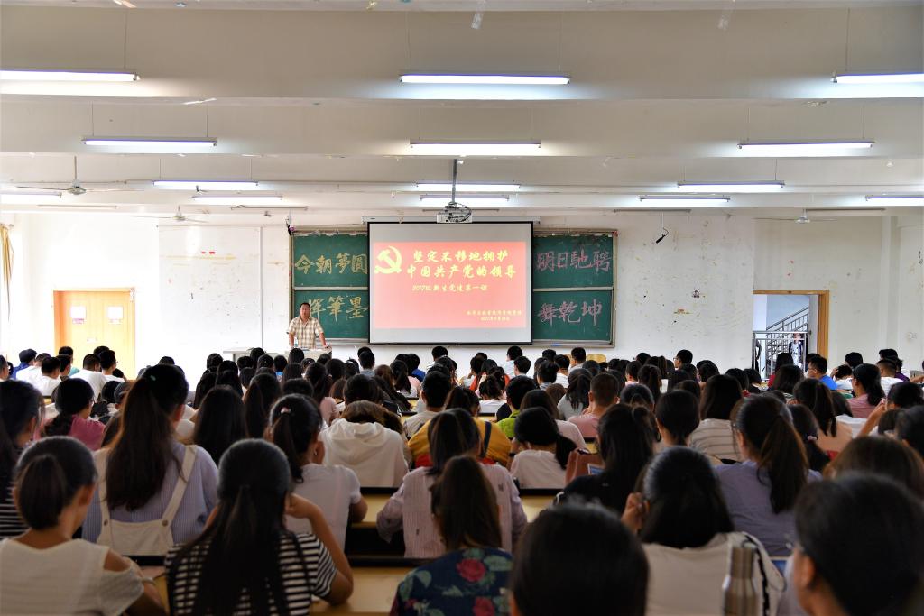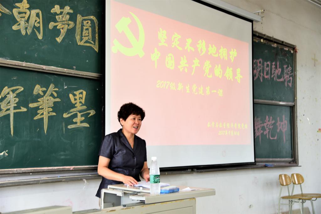 2017年9月14日上午,swag做爱 在敏行楼B5201为2017级新生举办了名为“坚定不移地拥护中国共产党的领导——2017级新生党建教育第一课”的党建专题教育讲座。学院党委书记王建香、党委秘书张亚萌分别为新生进行党课教育。讲座由张亚萌老师主持,2017级全体新生参加。
