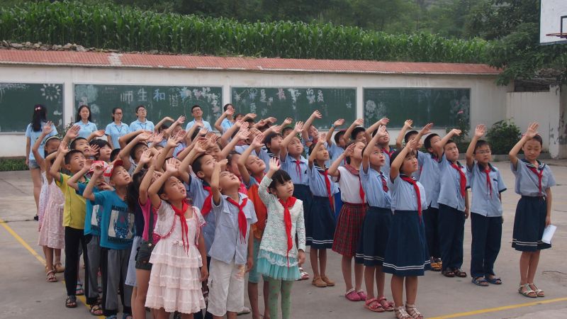 本着培养孩子们爱国主义和集体主义精神的理念,红日当天清晨,“梦凝”团队成员带领孩子们进行了庄严的升旗仪式。仪式过后,支教团队带领孩子们宣读了毛主席的《长征》,这也成为了宣扬革命精神及意义的良好开端。
