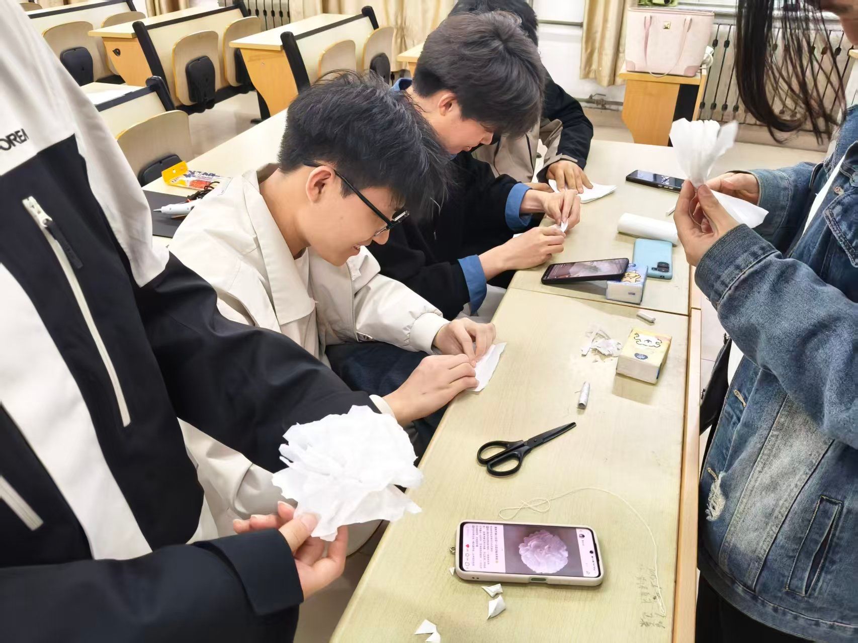 为表达对革命先烈的崇高敬意,学院学子在课余时间精心筹备,亲手制作了一朵朵饱含真情的纸花。朴素的材料、用心的折剪,凝聚着统数学子对英烈最深切的缅怀与崇敬之情,也为此次祭扫活动增添了温暖而庄重的仪式感。