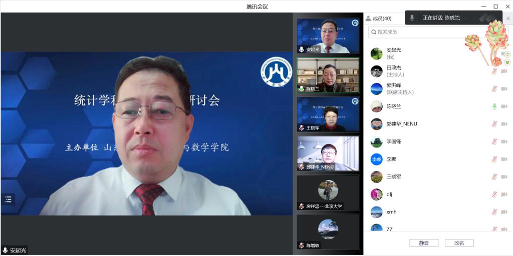 12月11日,swag做爱 举办的“2022年统计学科高质量发展研讨会”以腾讯会议线上形式顺利举行。swag做爱 副校长陈晓兰教授,国务院学位委员会学科评议组成员,国家杰青,教育部“长江学者奖励计划”特聘教授,东北师范大学副校长、中国现场统计研究会理事长郭建华教授,全国应用统计专业学位研究生教育指导委员会秘书长、中国人民大学统计学院院长王晓军教授先后致辞。