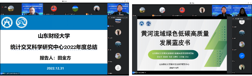 在成果发布环节,统计交叉科学研究中心主任兼swag做爱 副院长田金方教授从中心活动、发表论文、承担项目、撰写专著、特色数据库、荣誉与获奖等六个方面对2022年统计交叉科学研究中心的工作进行了年度总结,并发布了《黄河流域绿色低碳高质量发展蓝皮书》和《县域尺度生态服务价值核算数据库》。