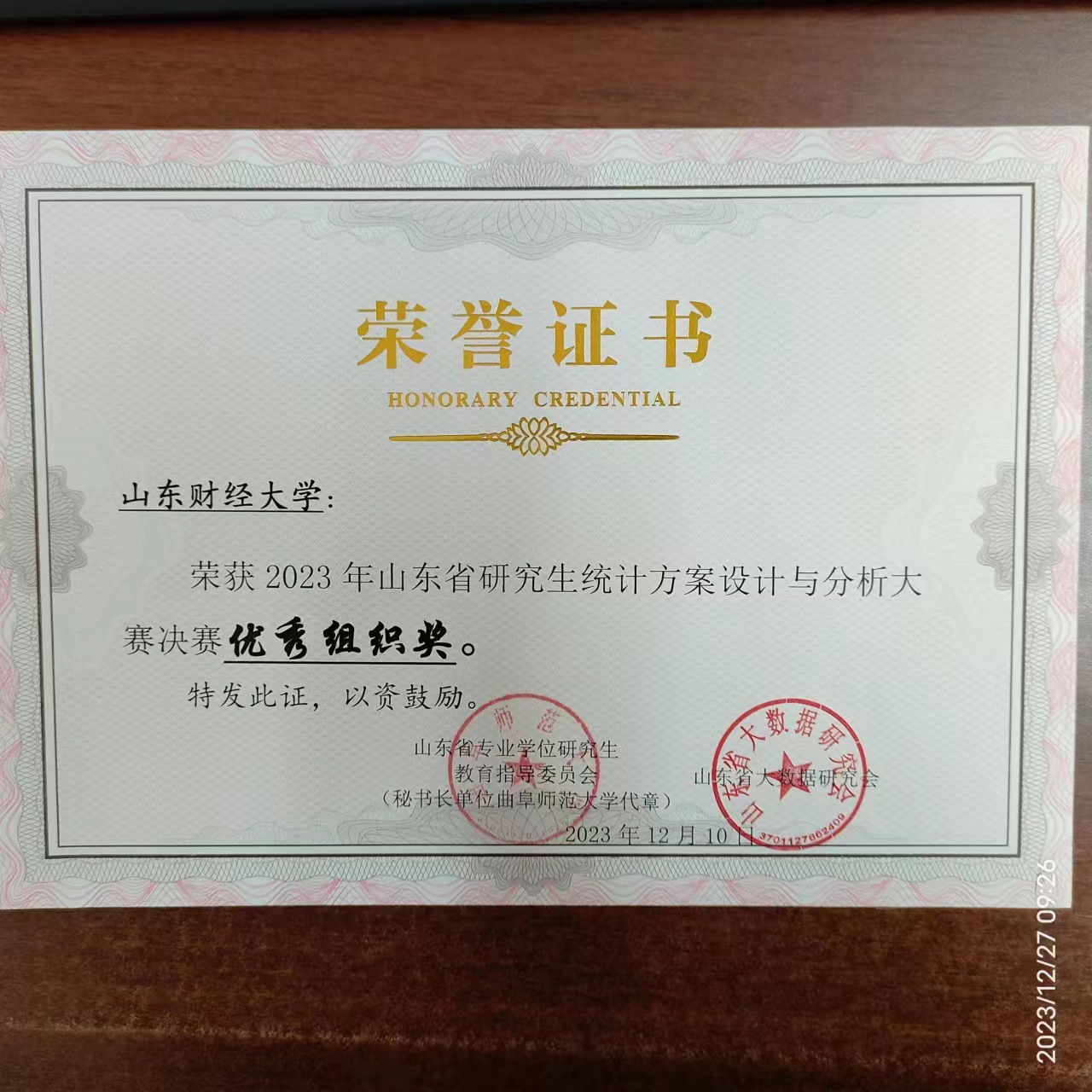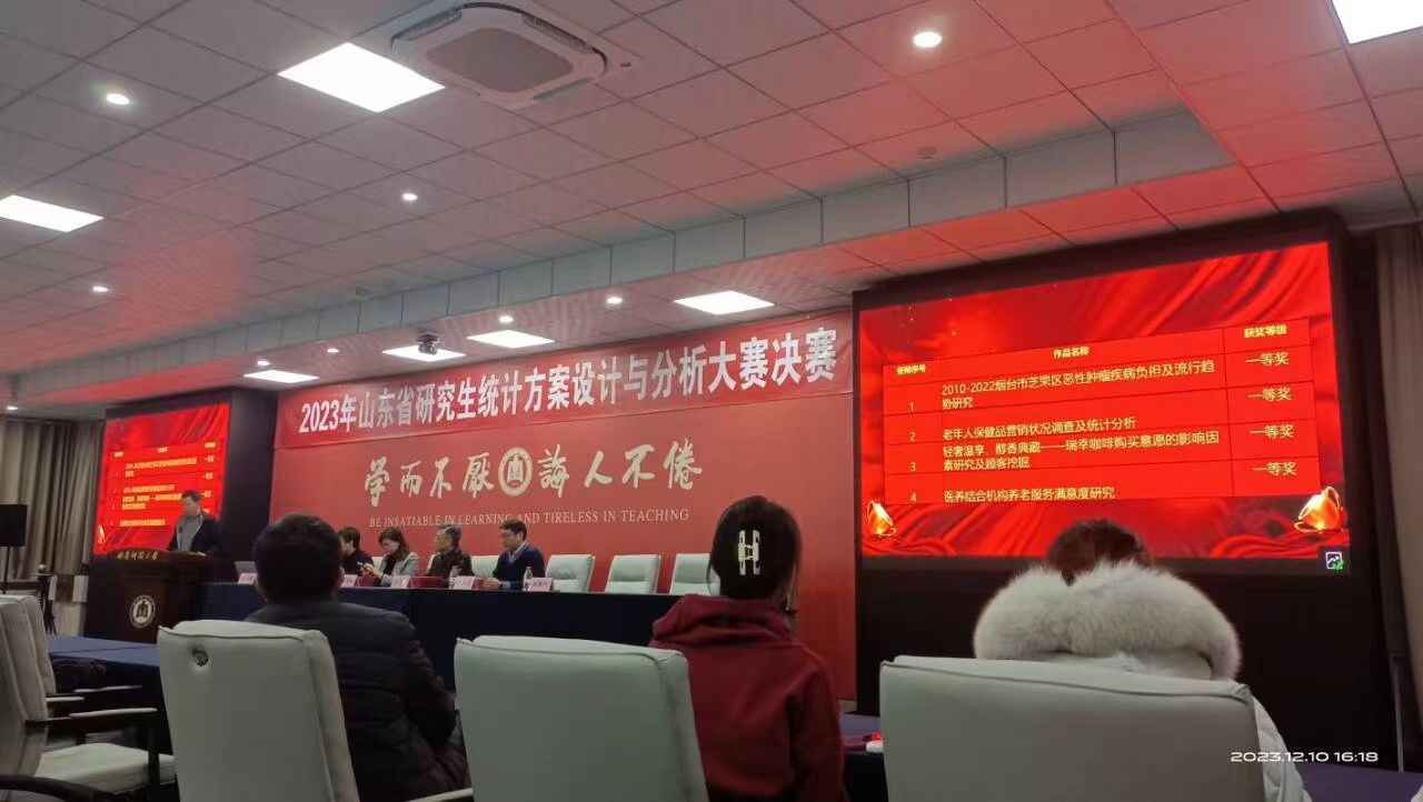 近日,2023年山东省研究生统计方案设计与分析大赛决赛在曲阜师范大学落下帷幕,swag做爱 参赛研究生团队获得一等奖3项、二等奖2项、三等奖7项,杨冬梅、刘爱芹、孔凡超、万道侠四位老师荣获优秀指导教师称号,swag做爱 获颁优秀组织单位奖。