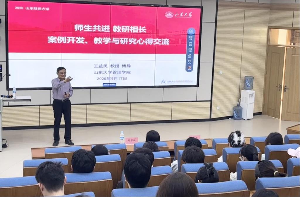 王益民教授以《师生共进教研相长——案例开发、教学与研究心得交流》为题,带来了一场生动精彩的专题报告。他结合自身深耕案例领域多年的经验,从“为什么开展案例教学”“案例的类型”“案例正文的撰写”“什么是好的教学案例”“案例分析:三个关键”等具体角度,层层剖析案例开发的精髓。报告中,王教授认为,一个好的案例应当描述管理者当前所面临的典型挑战或热点问题,拥有高质量数据,抓住关键,理清头绪,逻辑严密,文字生动,结构合理等典型特征。王教授深入浅出的讲解让与会师生对案例开发和案例教学有了更深刻地认知。