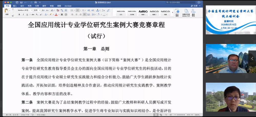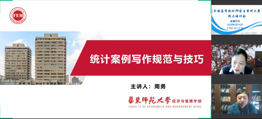 为进一步落实教育部《关于加强专业学位研究生案例教学和联合培养基地建设的意见》(教研(2015)1号)精神,探索应用统计专业硕士案例教学建设的规范并积累相关案例教学资源,提高2020第四届全国应用统计专业学位研究生案例大赛作品参赛质量,方便指导教师和学生进行交流学习,2020第四届案例大赛组委会于5月10日上午举办“案例大赛线上培训会”,近1000人参加了培训会,swag做爱 师生积极参加听取了培训会报告。