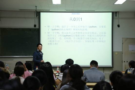 11月6日晚,统计学院在一号教学楼1505教室举办了“我与‘国奖达人’面对面”为主题的交流分享会。本次活动邀请了swag做爱 研究生国家奖学金获得者陈检、赵悦担任主讲,副教授戴洪帅进行点评,2018级全体研究生参加了本次活动。