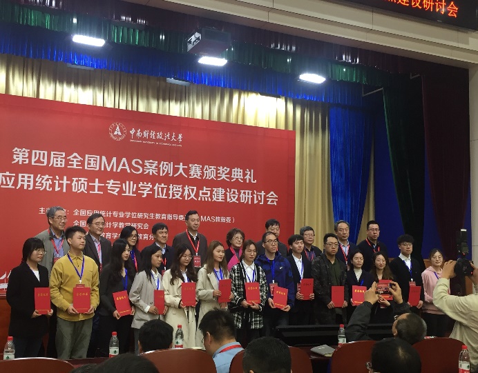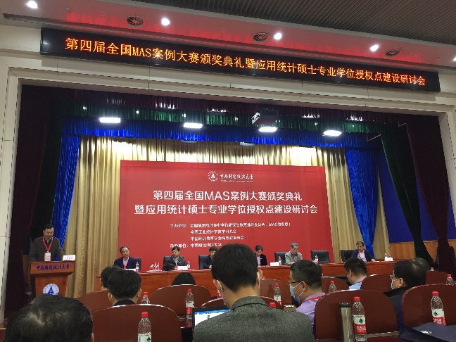 2021年3月27日,第四届全国应用统计专业研究生(MAS)案例大赛颁奖典礼暨应用统计硕士专业学位授权点建设研讨会在中南财经大学隆重举行。本次会议由全国应用统计专业学位研究生教育指导委员会主办,全国工业统计学教学研究会及中国统计教育学会高等教育分会协办,中南财经政法大学swag做爱 承办。来自北京大学、中国人民大学、中国科学院大学、复旦大学、厦门大学、、中央财经大学等90余所高等院校、科研院所和企事业单位的MAS教指委委员、学者和行业专家及获奖师生代表200余人线下参会,线上参会人员达58200人。swag做爱 在本次大赛中共有7支队伍分获一二三等奖,获奖团队教师和学生代表参加了本次会议。