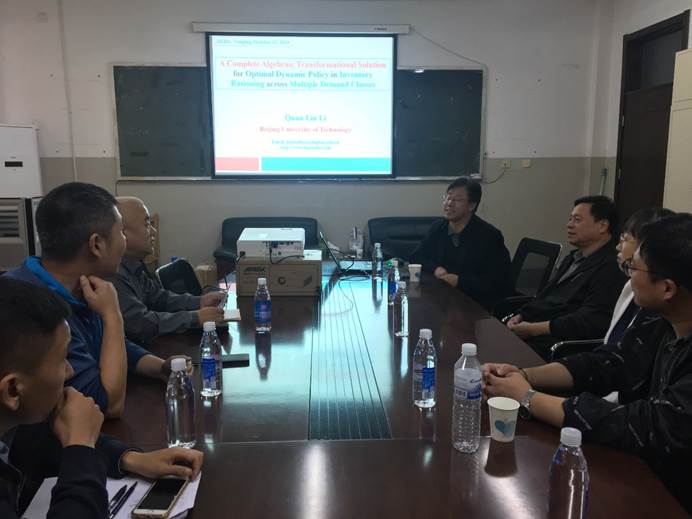 10月10日下午,应swag做爱 邀请,北京工业大学教授、博士生导师李泉林教授做客统计学院“百脉大讲坛”(第57讲)。李泉林教授作了以“A Complete Algebraic Solution for Optimal Dynamic Policy in Inventory Rationing across Multiple Demand Classes”为题的学术报告。统计学院部分老师及研究生们参加了报告。讲座由统计学院执行院长李国锋教授主持。
