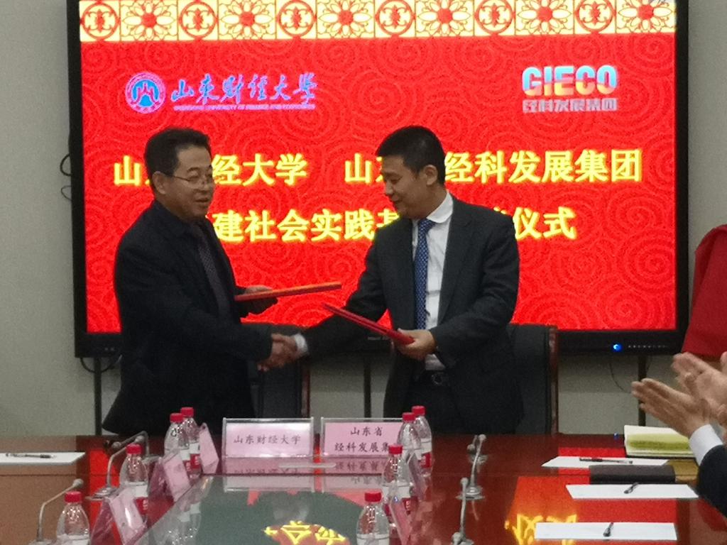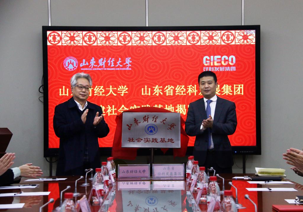 仪式上,副校长胡文波和山东经科发展集团董事长徐立共同为社会实践基地揭牌,swag做爱 院长安起光和山东省经科发展集团董事长徐立签订了共建协议。